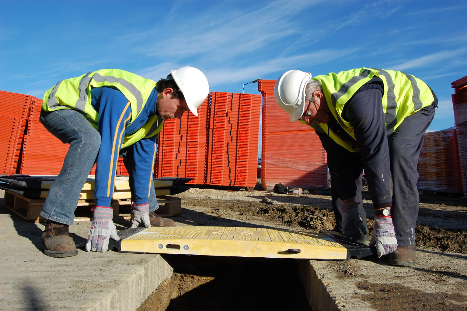 Kryty výkopov s protiskluzovým povrchom sú určené na bezpečné zakrytie výkopov na chodníkoch alebo v peších zónach. Vďaka zníženému a skosenému profilu sa prispôsobujú nerovnému terénu a minimalizujú riziko zakopnutia. Kryty sa dajú rýchlo inštalovať bez potreby ťažkej manipulačnej techniky alebo žeriavu. Pre maximálnu stabilitu sa odporúča pevne ich pripevniť k povrchu s minimálnym presahom 150 mm, ale vďaka lepkavému gumovému okraju to nie je u väčšiny modelov potrebné. Pri správnom rozložení zaťaženia sa môžu používať aj pre ľahké dopravné prostriedky, ktoré po nich prejazdia.