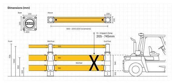Materiál MEMAPLEXTM, z ktorého sú zábrany A-SAFE vyrobené, absorbuje energiu nárazu a zábrana sa tak opakovane vracia do pôvodného tvaru. Tým sa predchádza poškodeniu zábran aj samotného manipulačného zariadenia. S bezpečnostnými zábranami s pamäťovým efektom radikálne znížite potrebu údržby a opráv, pričom sa vyhnete prestojom a zvýšite efektivitu prevádzky.