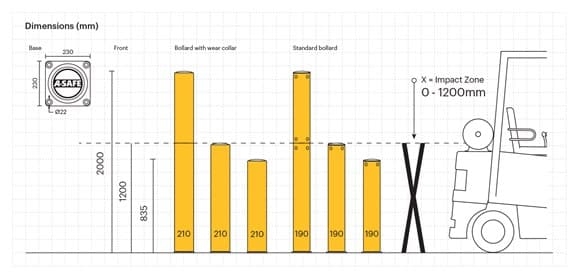 Stĺpy Bollard svojou výraznou žltou farbou vizuálne vymedzujú priechody pre vodičov vozidiel. Pri náraze sa konštrukcia stĺpika vychýli, čím sa odkloní doprava a stĺpik sa vráti do pôvodného tvaru. V prípade potreby zastavenia zariadenia odporúčame použiť zábrany typu Traffic.