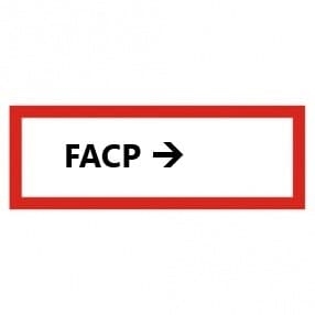 AT-SB46.FN81.074 | Bezpečnostné požiarne značenie, ''FACP'' so šípkou – luminiscenčná fólia, 210×74 mm |