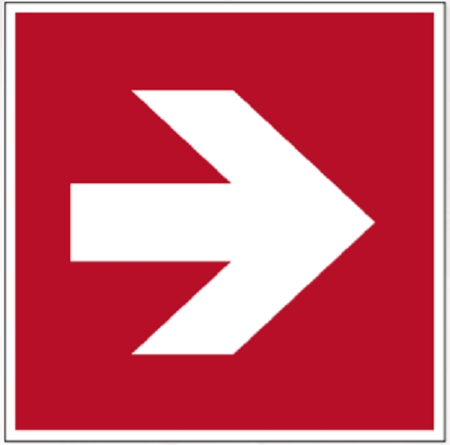 AT-SB07.DAN80.100 | Bezpečnostné požiarne značenie – luminiscenčný hliníkový kompozit, indikátor smeru, 100×100 mm |