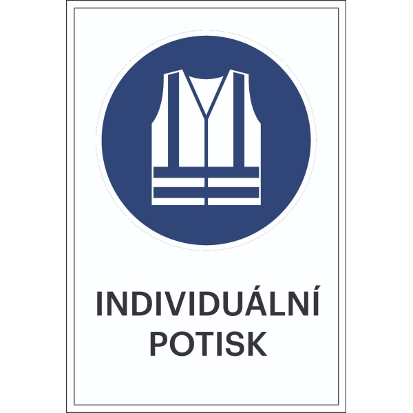 AT-SGK06.FAB99.300 | Bezpečnostné príkazové značenie, Použite vestu s vysokou viditeľnosťou, s možnosťou individuálneho textu – fólia, 200×300 mm |