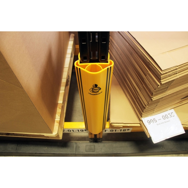 Na ochranu čelných regálov odporúčame kombinovať spolu s regálovou koncovou zábranou RackEnd Barrier. Na rozdiel od konkurenčných chráničov, chrániče RackGuard držia na stojine veľmi pevne.