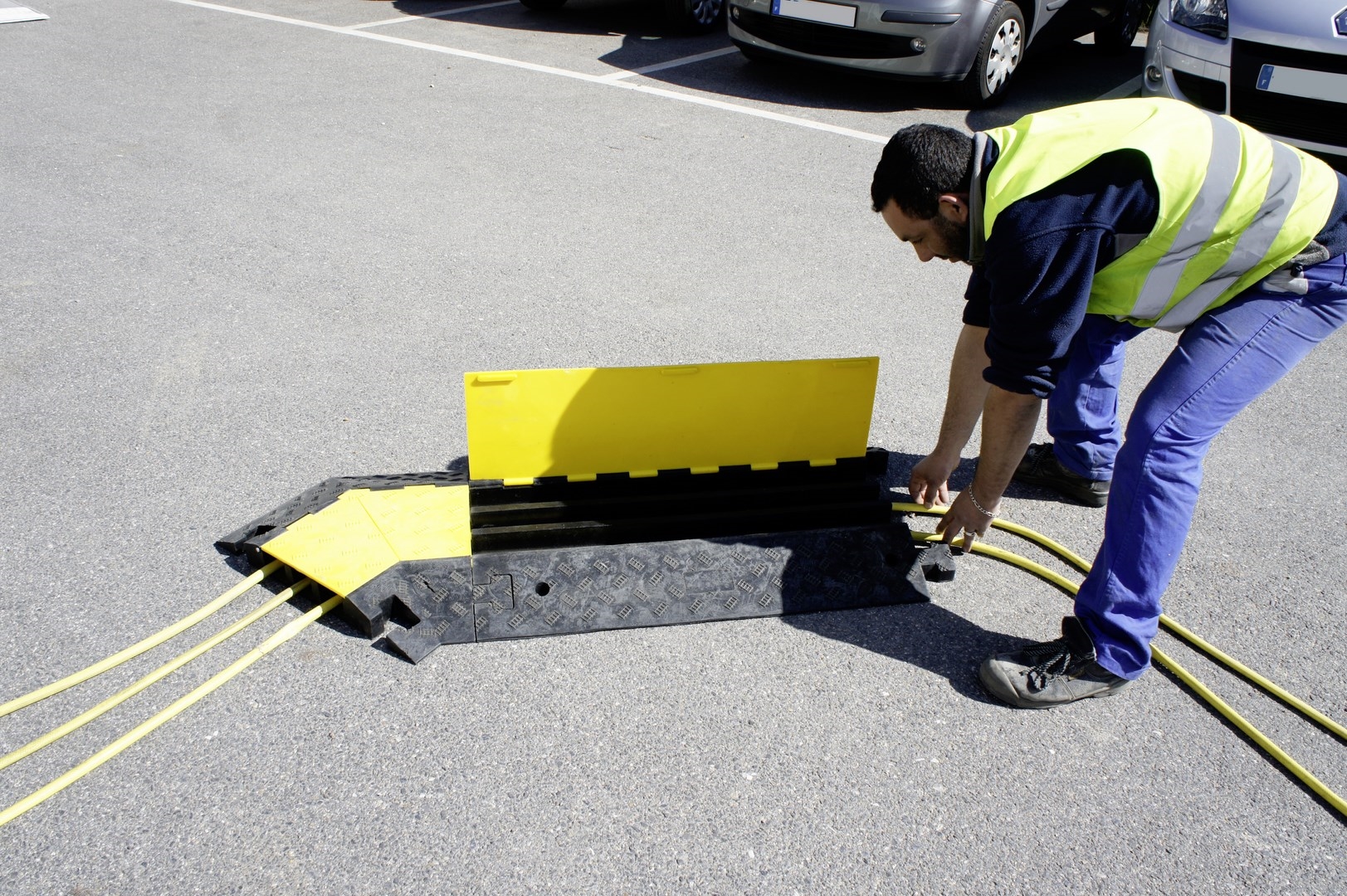 Káblové mostíky účinne chránia pred neúmyselným zakopnutím a zabezpečujú bezpečný prechod ťažkých zariadení. Vyrobené z gumy – odolnej voči oleju, kyselinám, benzínu, UV žiareniu a poveternostným vplyvom. Zabráňte dlhodobému kontaktu s uhľovodíkmi.