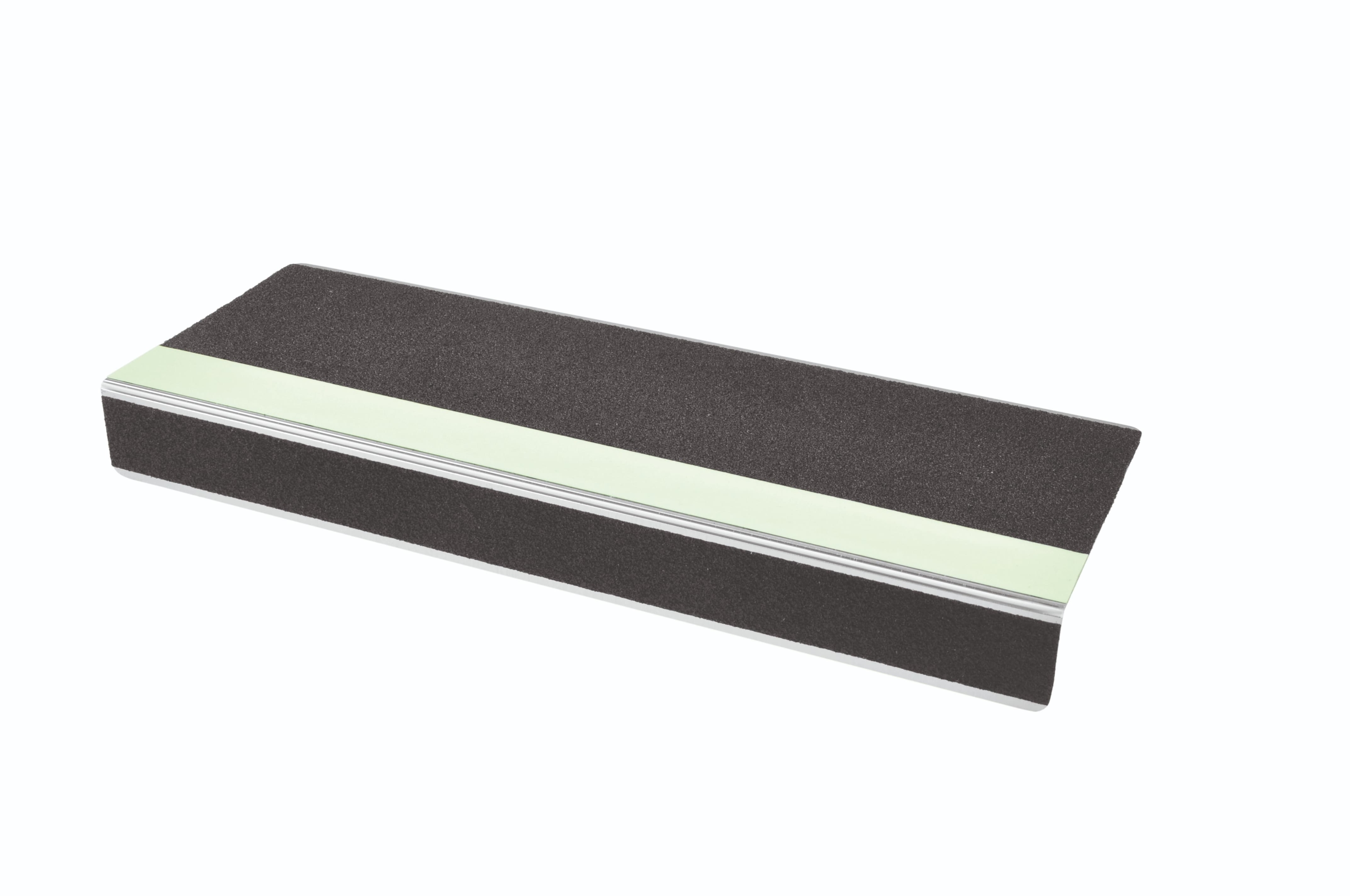 Luminiscenčný protišmykový profil na schodové hrany WT-5409 – minerálny granulát v syntetickej živici, čierna-luminiscenčná-čierna, 1000×31×106 mm