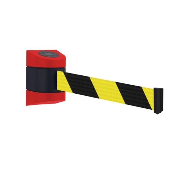 Nástenná kazeta MAXI so samonavíjacím pásmom je ideálna na vymedzenie priestorov s nedostatkom miesta, ako sú chodby, priechody, vstupy do výťahov, pohyblivé schody a pokladnice.