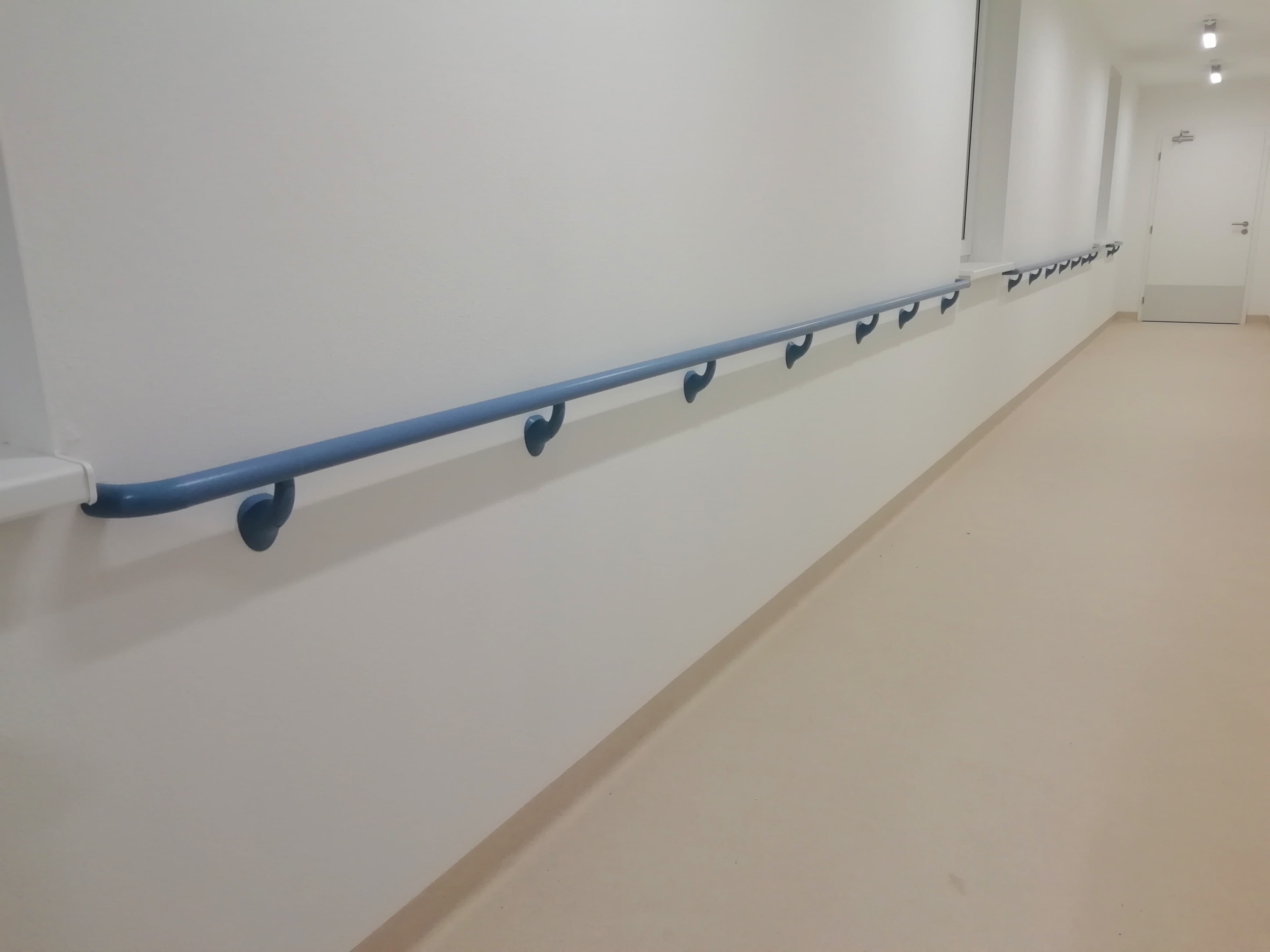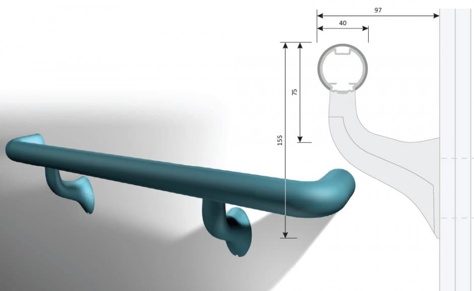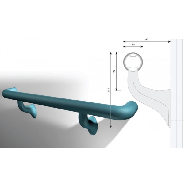 Nástenné madlo Handrail 940 – PVC farba štandard podľa vzorkovníka, 40 mm × 3,66 m, vrátane 7 nástenných konzol