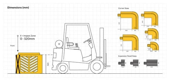V prípade potreby ochrany pred ostrými nárazmi, napr. od vysokozdvižných vozíkov, odporúčame zvoliť iný typ ochrany.