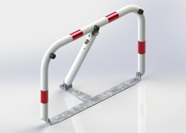 Parkovacia zábrana je uzamykateľná pomocou cylindrického zámku FAB. Štandardne si môžete zvoliť povrchovú úpravu zábrany, a to striebornú (žiarovo pozinkovaná) alebo bielu (lakovaná práškovou vypaľovanou farbou komaxit).