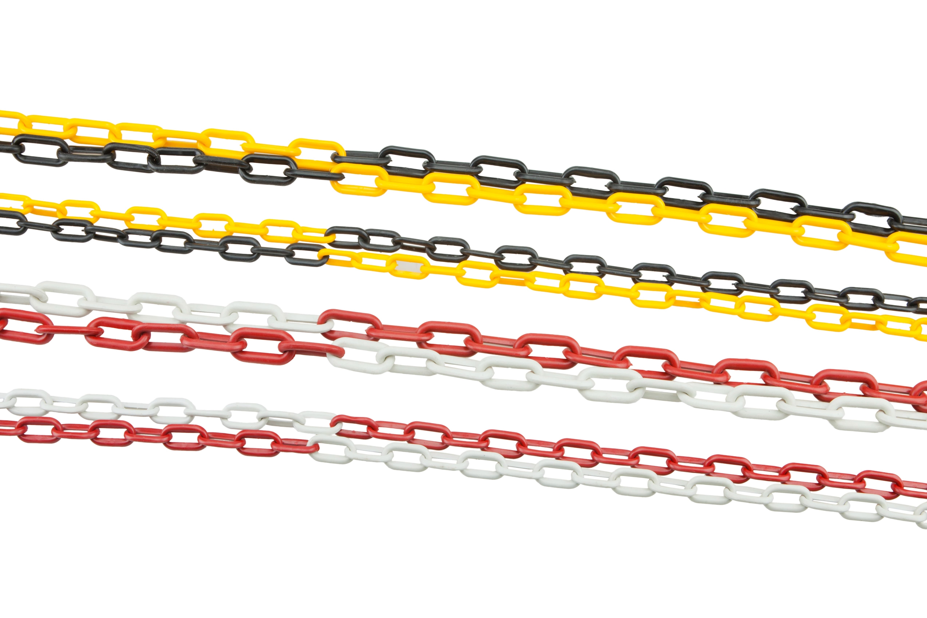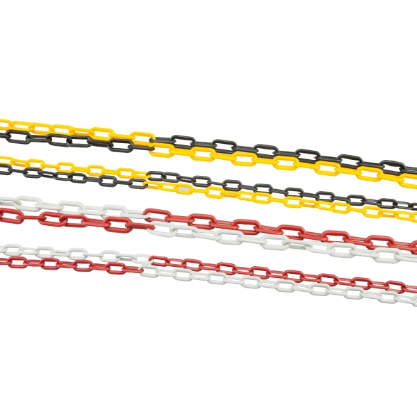 CV-00104RDW | Plastová reťaz – červeno-biela, 25 m × 6 mm |