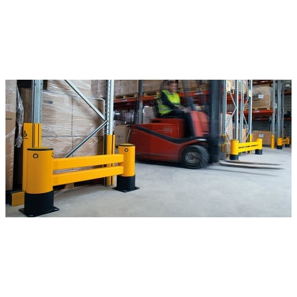 Regálová koncová zábrana eFlex Double RackEnd Barrier bez dvojitého opláštenia je určená na ochranu prednej časti paletových regálov pred nárazmi manipulačných zariadení. Tento typ zábrany je vhodný pre sklady so strednou intenzitou prevádzky.