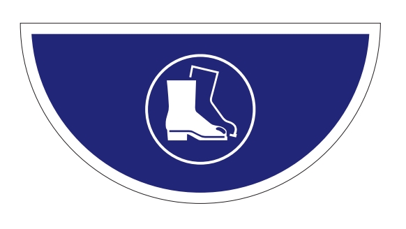 AT-SH12.FK29.750 | Samolepiace plošné protišmykové značenie (polkruh), Použite ochranu nôh – fólia, 750×375 mm |