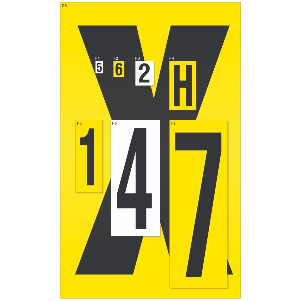 Znaky sa dodávajú v štyroch veľkostiach na žltom alebo bielom pozadí.