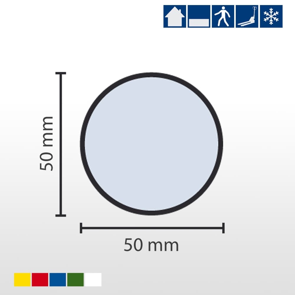 Samolepiaci označovač umiestnenia paliet WT-5210 v tvare kruhu sa používa na označenie miest na skladovanie paliet. Je vyrobený z ľahko čistiteľného polykarbonátu, ktorý je odolný voči manipulácii a čistiacim strojom.