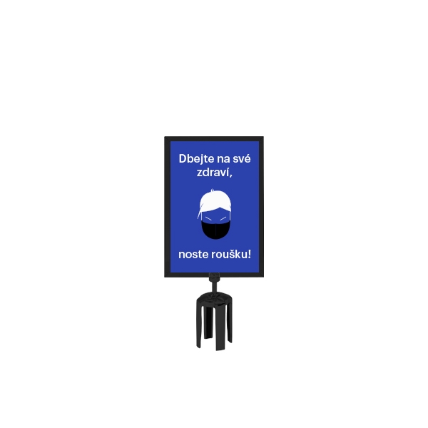 Vertikálny držiak na označenie zn. Tensabarrier A4 v čiernej farbe. Pomocou plne orámovaného držiaka si ľahko vytvoríte vlastné označenie alebo odkaz.