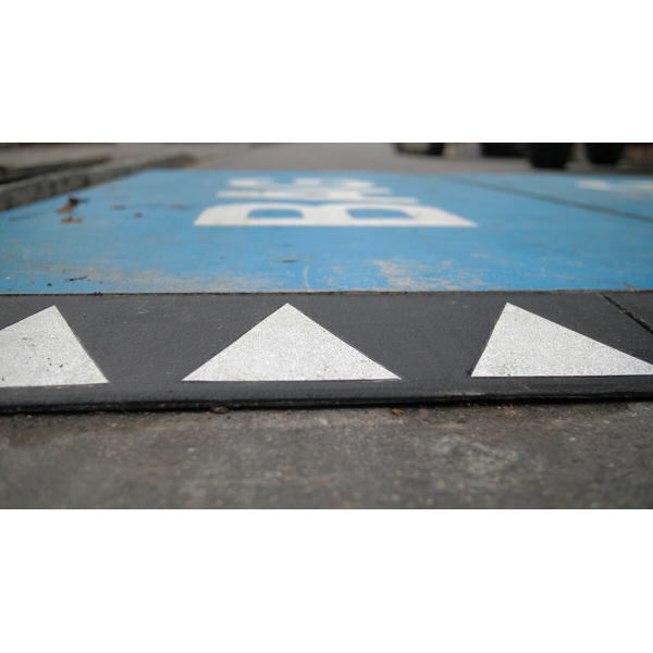 Nájazdová rampa je vyrobená zo špeciálne navrhnutej recyklovanej gumy a je tak vysoko odolná proti ťahu a kompresii. Výrazne znižuje hluk spôsobený nárazom oceľových dosiek na povrch vozovky. Uplatnenie nájde najmä v obytných zónach. Povrch materiálu je vodoodpudivý s protišmykový. Odoláva najvyššiemu zaťaženiu a minimalizuje dopady na podvozky vozidiel na rozdiel od bežných oceľových dosiek spôsobujúcich silné nárazy.