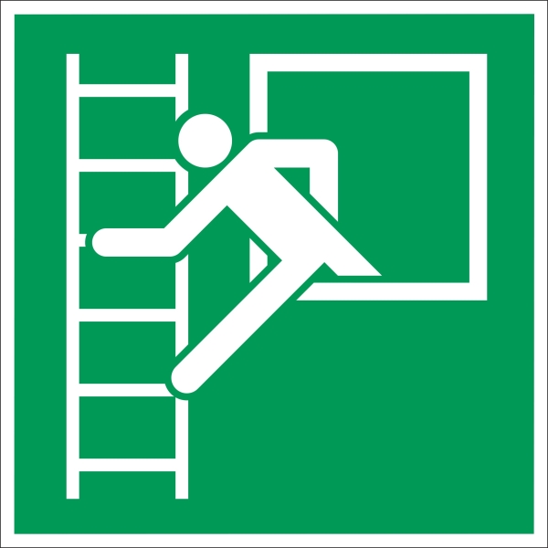 AT-SR16.FAB99.100 | Únikové luminiscenčné značenie, Núdzový východ s hasičským rebríkom – fólia, 100x100 mm |