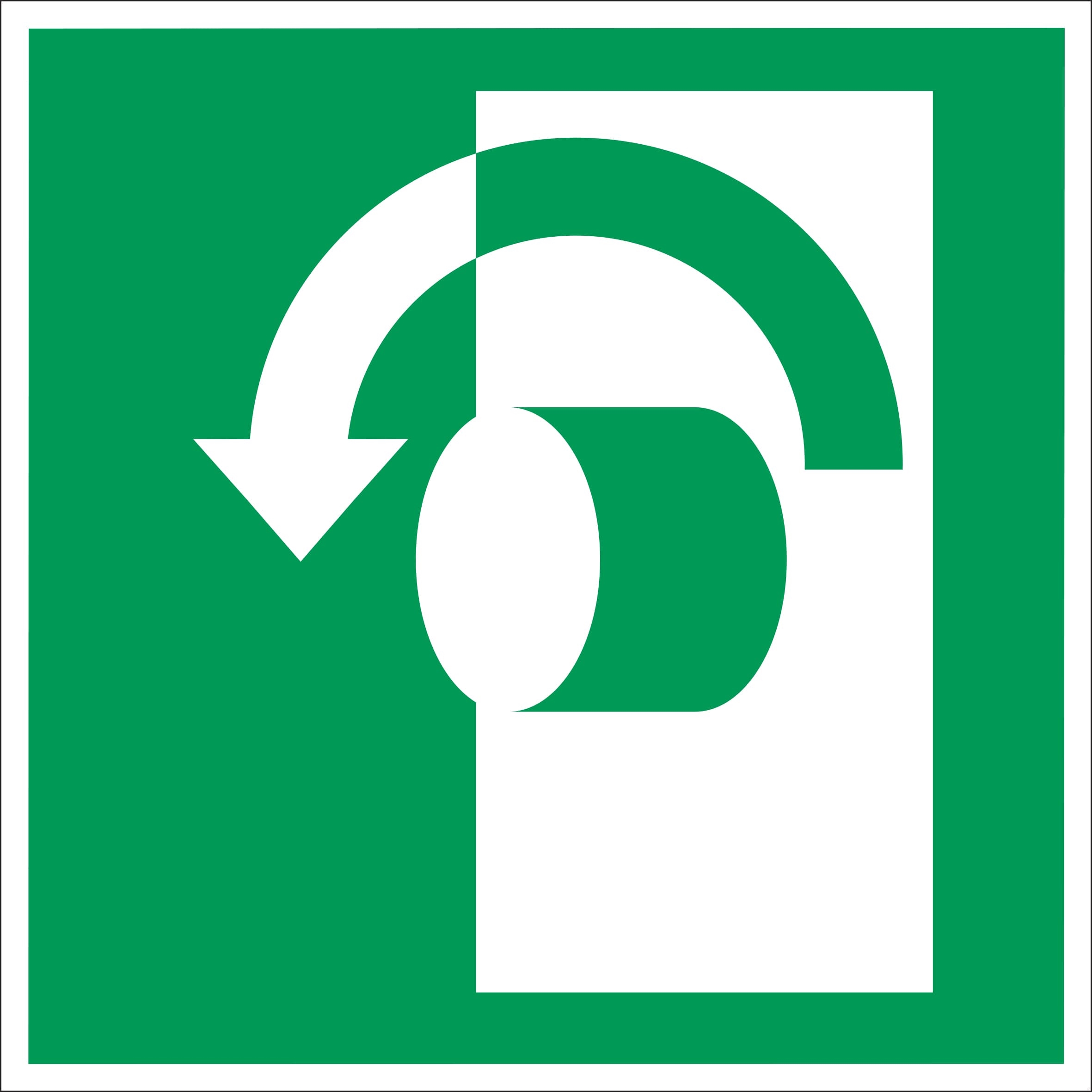 AT-SR04.FAB99.150 | Únikové luminiscenčné značenie, Otvorte doľava – fólia , 150x150 mm |