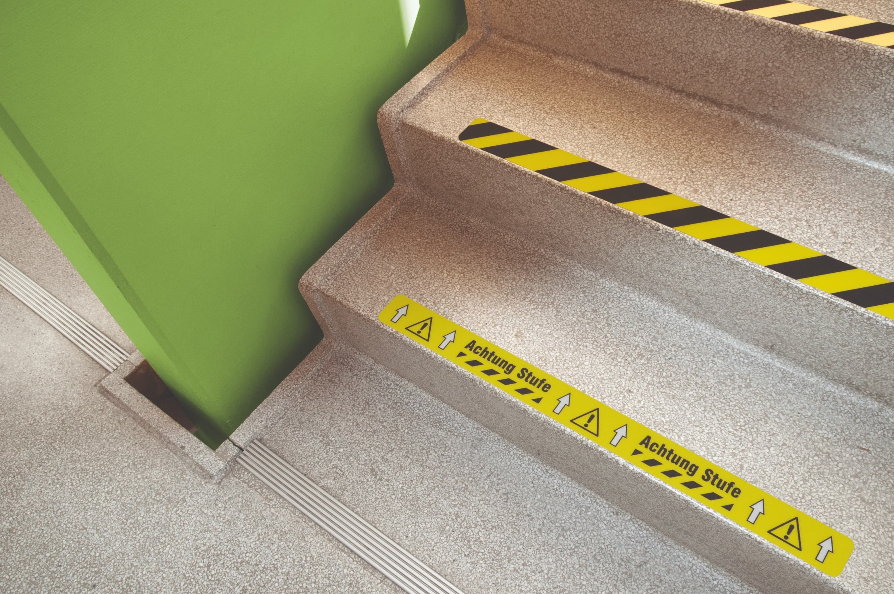 Univerzálne tlačené podlahové značenie je protišmykové (trieda protišmykovosti závisí od zvoleného materiálu). Inštalácia je veľmi jednoduchá. Z rovnakého materiálu sú k dispozícii aj označovacie body a paletové značky.