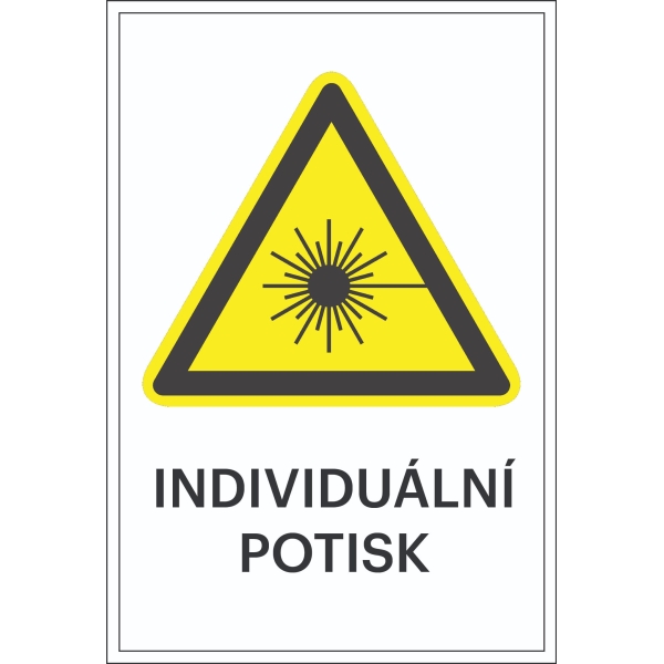 AT-SWK04.DA90.750 | Varovné značenie, Varovanie pred laserovým lúčom, s možnosťou individuálneho textu – hliníkový kompozit, 500×750 mm |