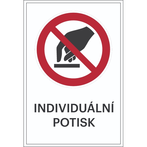 AT-SVK09.DA90.600 | Zákazové značenie, Nedotýkať sa, s možnosťou individuálneho textu – hliníkový kompozit, 400×600 mm |