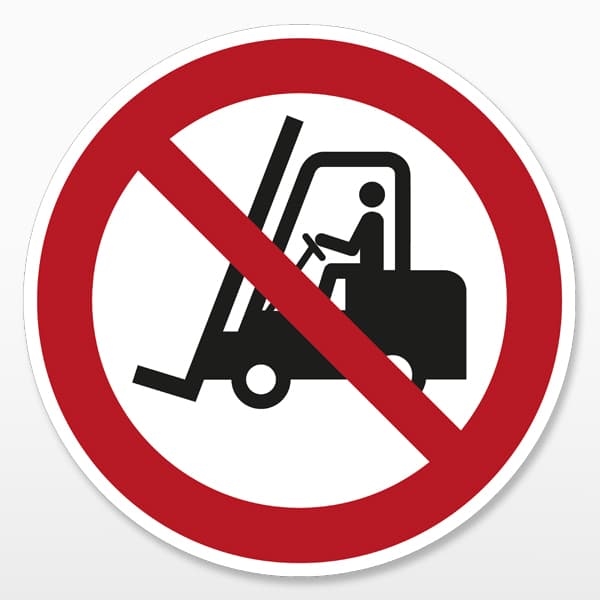 Zákazové bezpečnostné značenie je vhodné na miesta, kde sú v prevádzke paletové vozíky, vysokozdvižné vozíky, čistiace stojany atď. Na označovanie ciest, pracovísk, bezpečnostných zón alebo parkovísk.