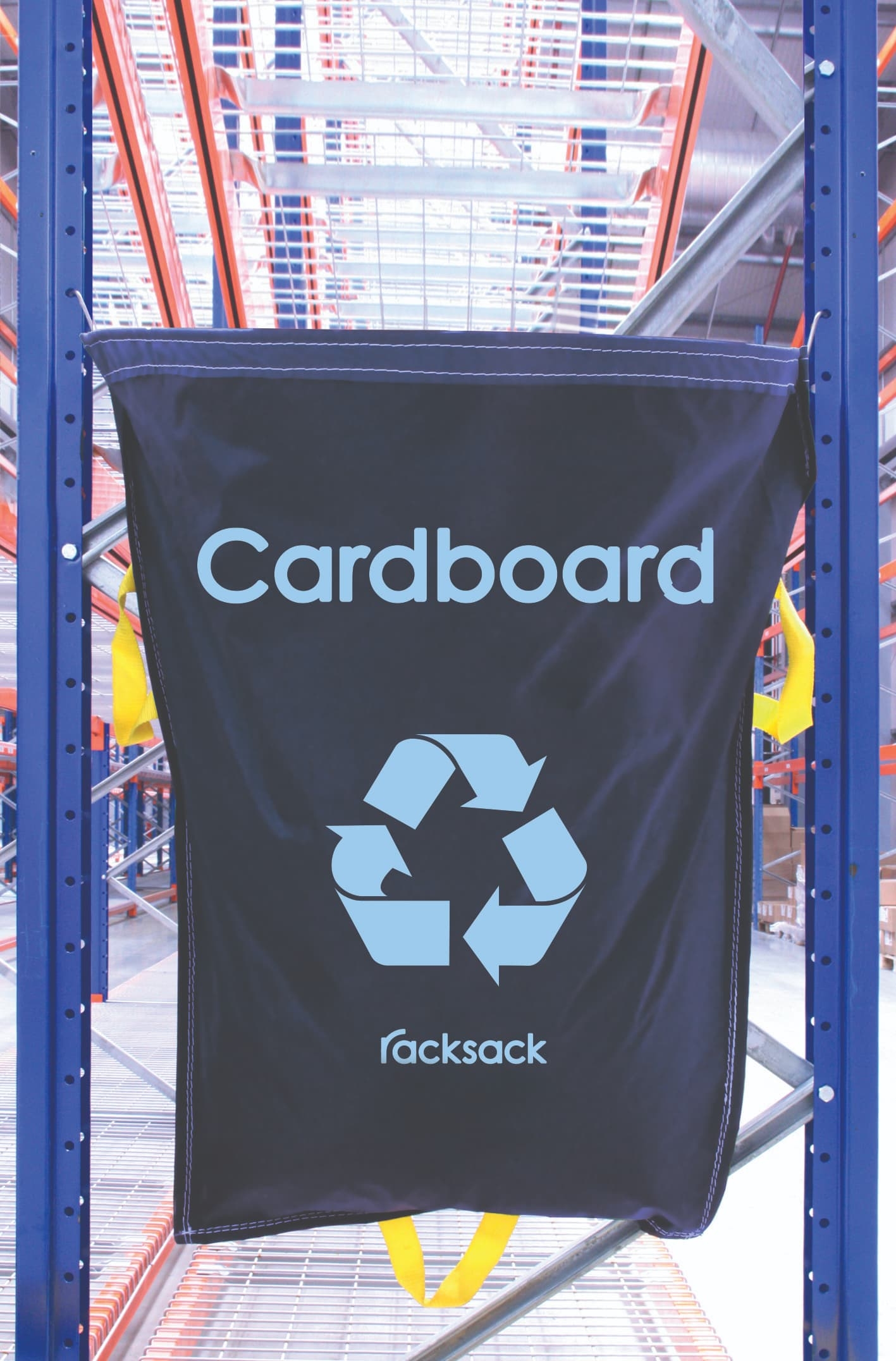 RackSack je vhodný do väčšiny regálových systémov a políc so šírkou od 900 mm do 1100 mm. Vrecia na triedenie odpadu sa pripevňujú na koniec regálových rámov, čím sa šetrí miesto.